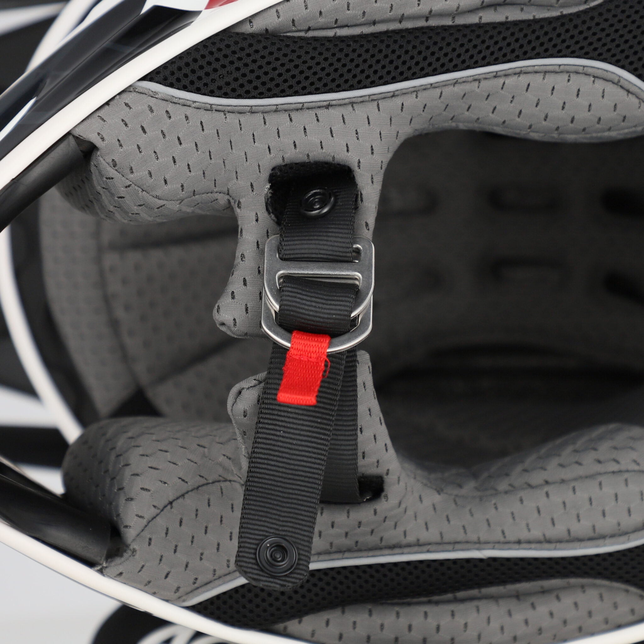 Hjälmen är ECE/ONU 22.06-godkänd och utrustad med dubbel D-ring stängning för säker och exakt fastsättning. Den invändiga polstringen är avtagbar, allergivänlig, andningsbar och tvättbar.