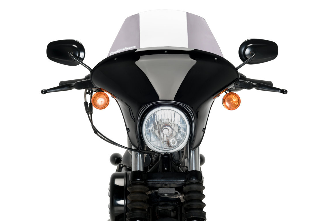 Puigs Batwing SML vindruta är tillverkad av en svart plastskal och är designad för att förbättra motorcykelns anpassade design.