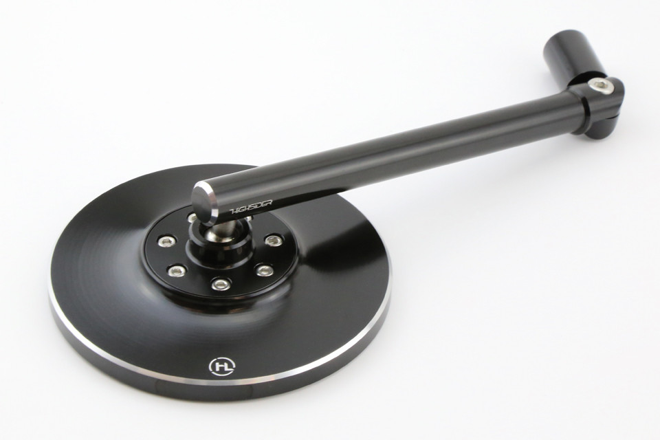 Highsider spegel Conero i svart elokseret aluminium med let rökfärg och convex.