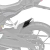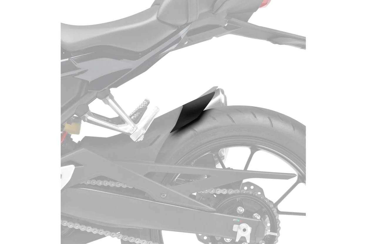 Förlängningen är tillverkad i slagtålig ABS-plast, som kombinerar låg vikt, hög styrka och exakt passform. Den monteras direkt på motorcykelns originala bakskärm med medföljande självhäftande kuddar samt nitar för extra fäste, utan behov av permanenta ändringar.