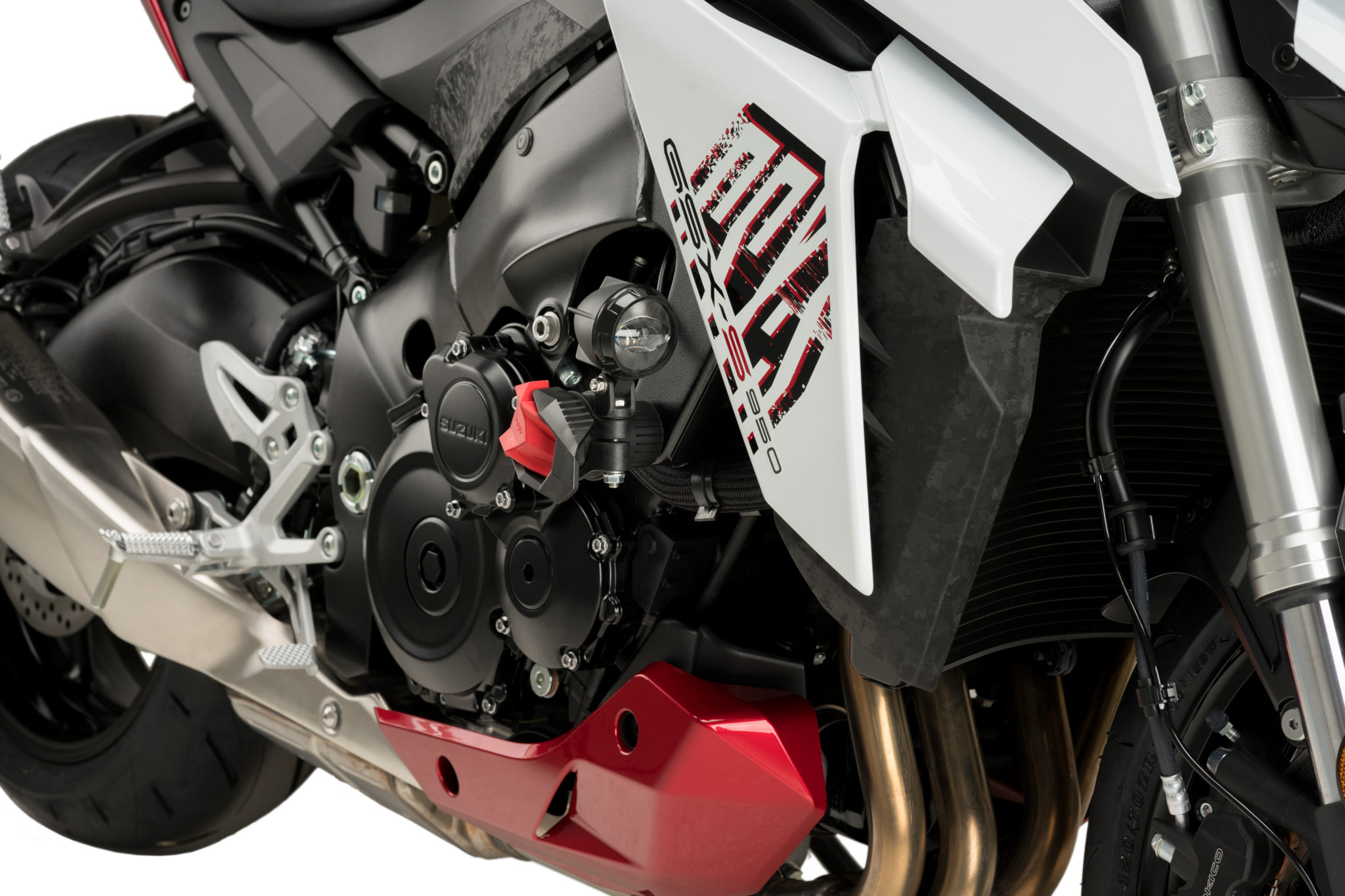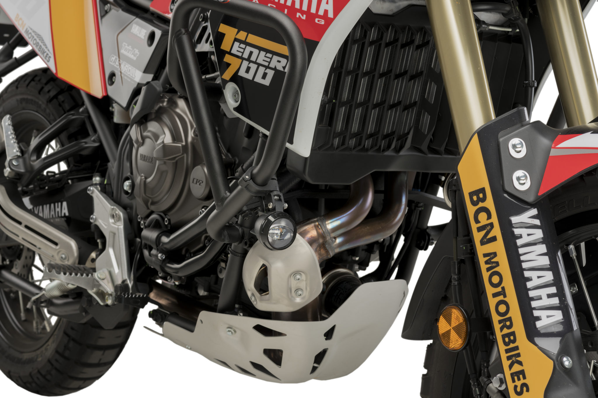 Universalstrålkastare med låg energiförbrukning, LED-teknologi och aluminiumskydd i svart finish ger maximal belysning så att föraren kan njuta av nattresor samtidigt som synligheten förbättras avsevärt jämfört med andra trafikanter. Dessutom passar designen och materialet på lyktorna perfekt till estetiken på din motorcykel.