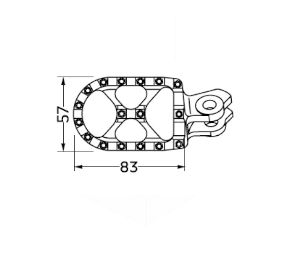 Fotpinnarna är CNC-bearbetade i aluminium och konstruerade för att tåla hård belastning, smuts och fukt. Den grovt strukturerade och bredare ytan ger effektivt grepp, även vid körning med leriga stövlar, och bidrar till ökad kontroll vid acceleration, inbromsning och stående körning. Konstruktionen är framtagen med fokus på funktion och hållbarhet.
