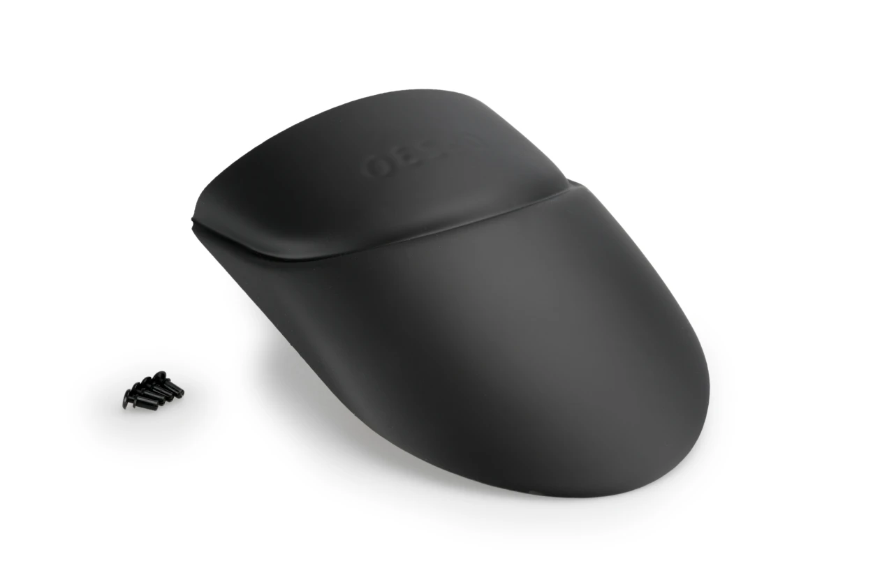 För monteringen medföljer självhäftande tejp för fastsättning. Nitar levereras som extra säkring för en mer permanent montering på den originala framskärmen.
