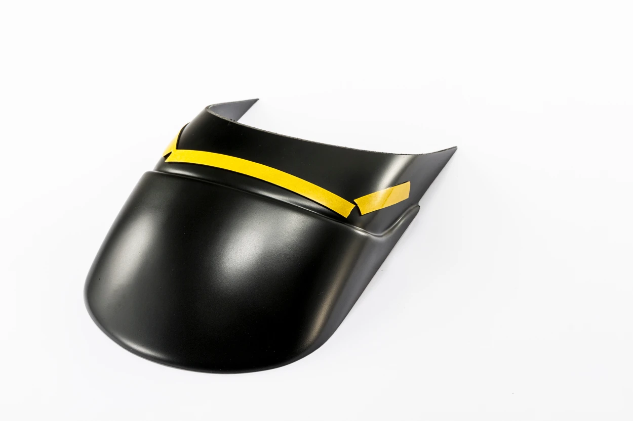 För monteringen medföljer självhäftande tejp för fastsättning. Nitar levereras som extra säkring för en mer permanent montering på den originala framskärmen.
