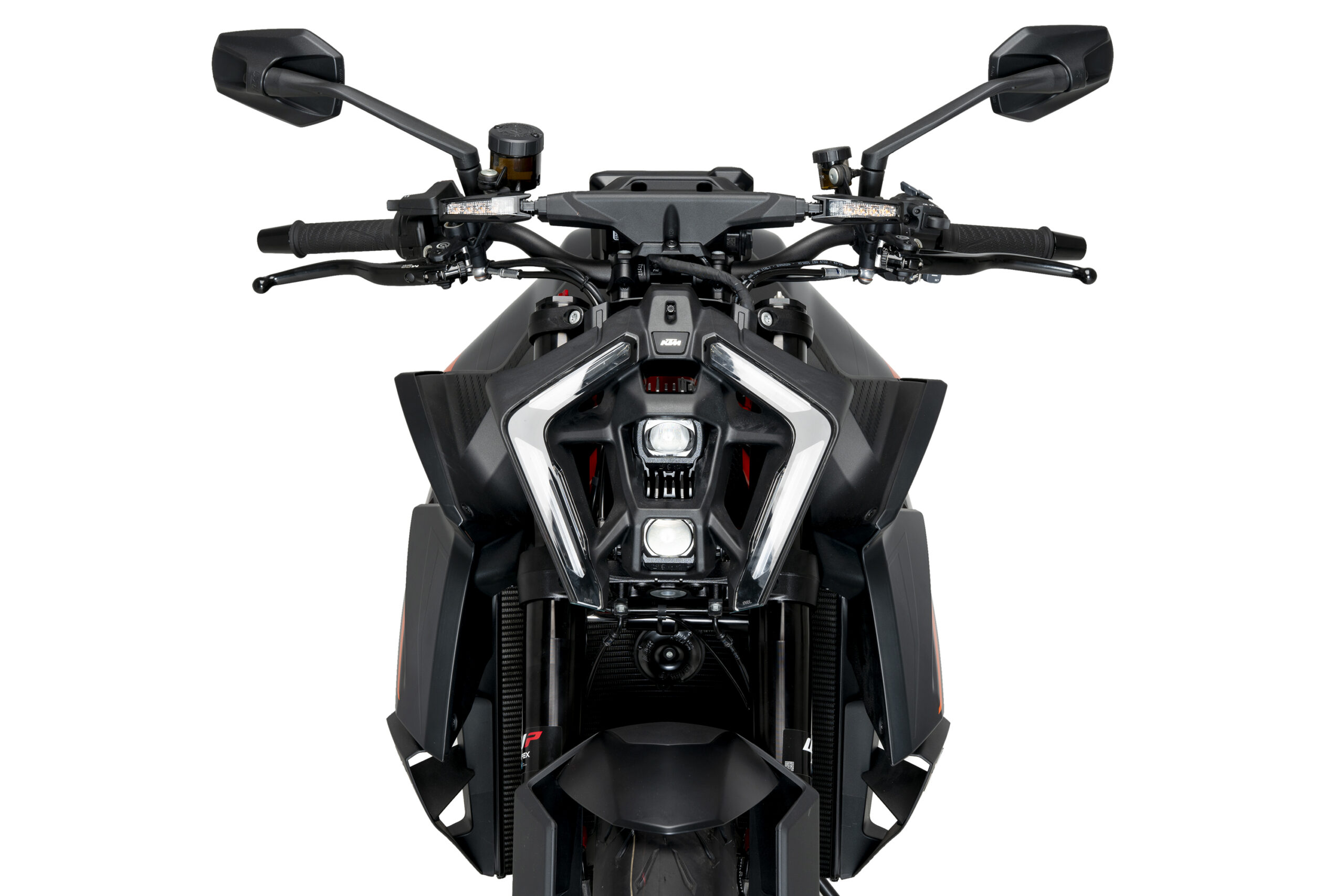 Puig Downforce-spoilers ger din motorcykel ett skarpare, mer aggressivt och aerodynamiskt uttryck samtidigt som de förbättrar stabilitet och kontroll vid både låg och hög hastighet. De vindtunneltestade vingarna skapar aktiv downforce, vilket minskar lyftet på framhjulet och ger mer precision vid acceleration, inbromsning och kurvtagning.