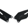 De förhindrar kontakt mellan förarens skor och rörliga delar som svingarm eller kedja, och bidrar samtidigt till en mer bekväm fotposition och ett rent, tekniskt utseende.