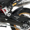 Bakskärmen är tillverkad i slitstarkt plastmaterial och formgiven för att integreras naturligt med motorcykelns baksektion. Den modellanpassade utformningen säkerställer korrekt passform och monteras på befintliga fästpunkter utan behov av modifiering.