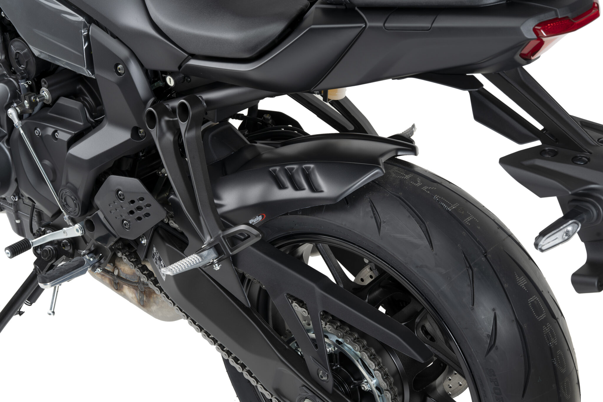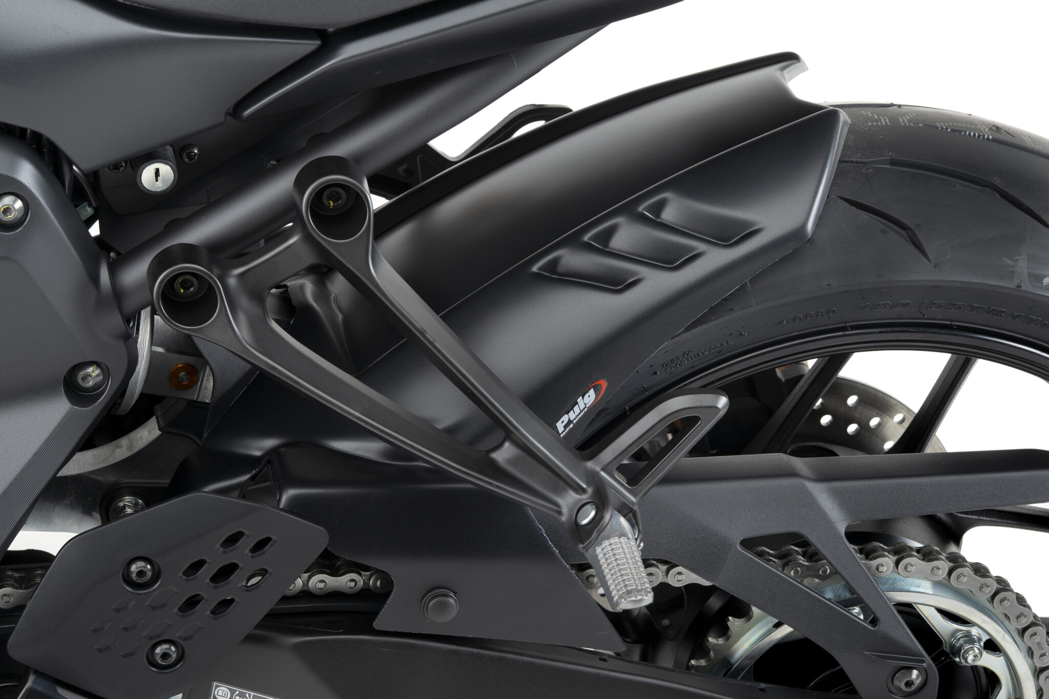 PUIG bakskärm skyddar motorcykelns bakre del mot smuts, småsten och stänk vid alla typer av körning, samtidigt som den följer motorcykelns linjer och ger ett genomarbetat utseende.
