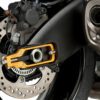 Puig kedjespännare är utvecklad för exakt och stabil justering av kedjespänningen och passar motorcyklar där korrekt inställning och jämn justering är viktigt. Konstruktionen ger möjlighet att justera kedjan med millimeterprecision, vilket gör det enklare att uppnå korrekt spänning och symmetrisk justering på båda sidor.