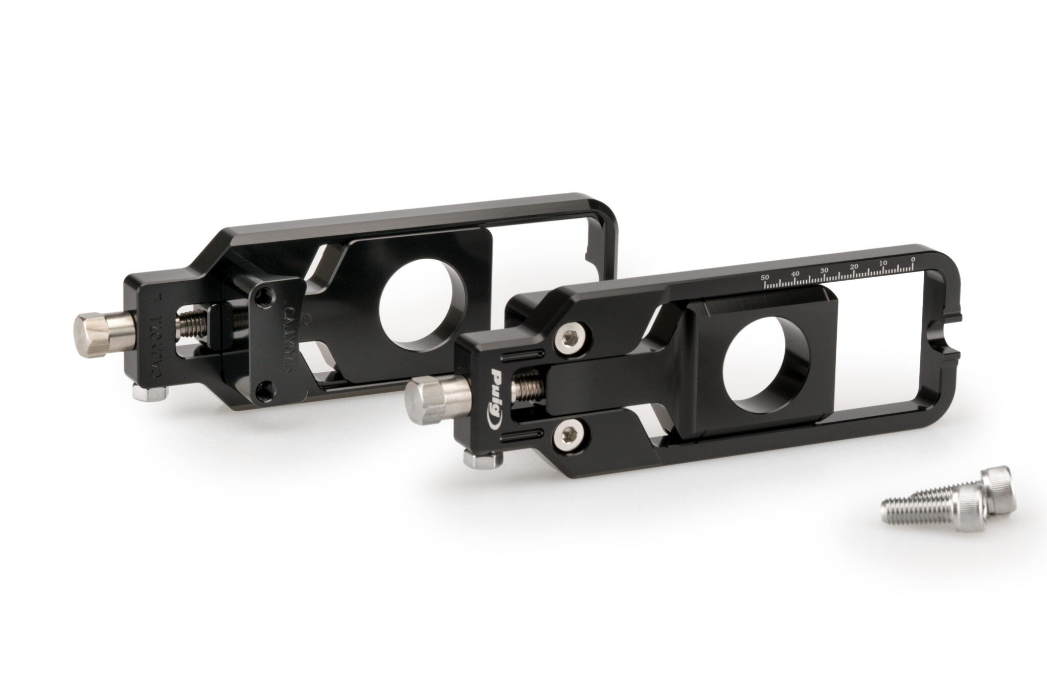 Puig kedjespännare är utvecklad för exakt och stabil justering av kedjespänningen och passar motorcyklar där korrekt inställning och jämn justering är viktigt. Konstruktionen ger möjlighet att justera kedjan med millimeterprecision, vilket gör det enklare att uppnå korrekt spänning och symmetrisk justering på båda sidor.