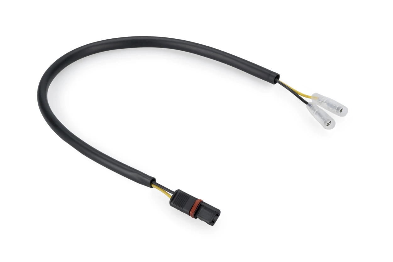 Puig kabelsats för nummerskyltsbelysning gör det enkelt att ansluta nummerskyltsbelysningen utan att ändra motorcykelns originala kabelhärva. Lösningen säkerställer en ren och funktionell installation där nummerskyltsbelysningen integreras korrekt i uppsättningen.