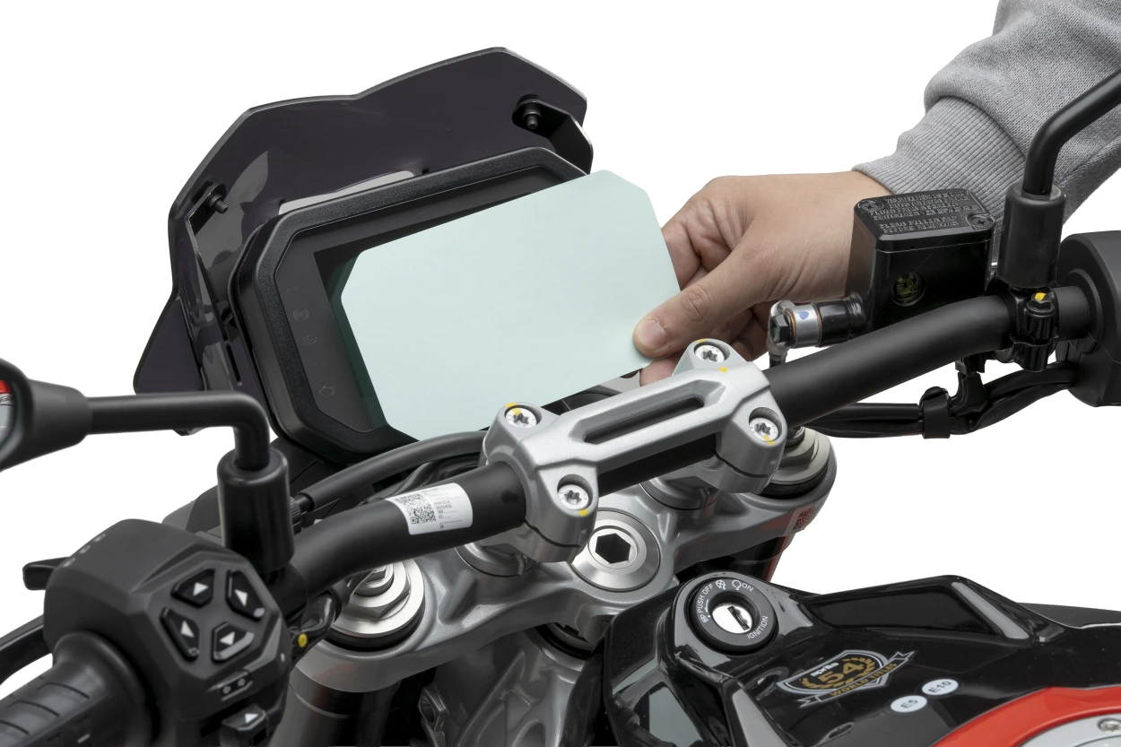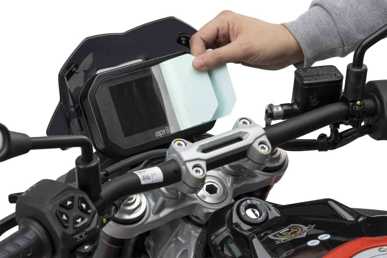 Puig skärmskydd skyddar motorcykelns digitala display mot repor, smuts och dagligt slitage. Den transparenta skyddsfilmen bevarar skärmens tydlighet och säkerställer att informationen förblir lätt att läsa under körning.