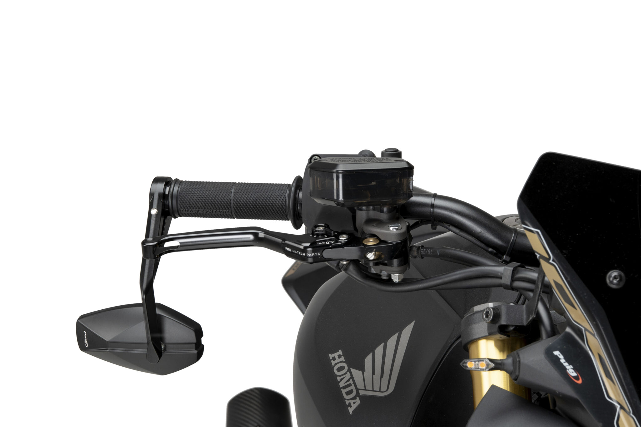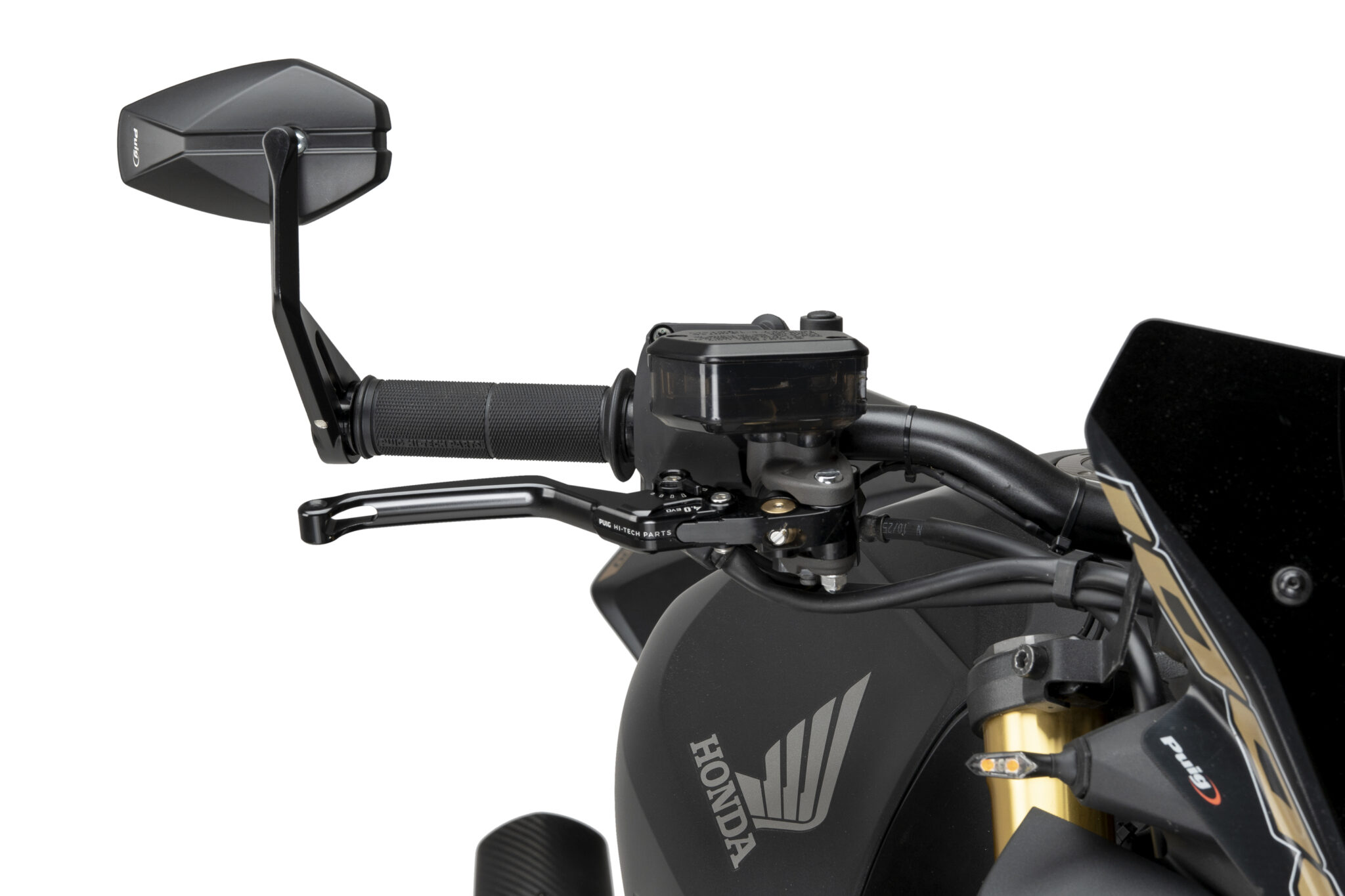 Puig MP25 spegel ger motorcykeln en kompakt och funktionell spegellösning med en stilren och modern design. Den enkla formen bidrar till ett diskret utseende samtidigt som spegeln ger klar sikt bakåt under körning.