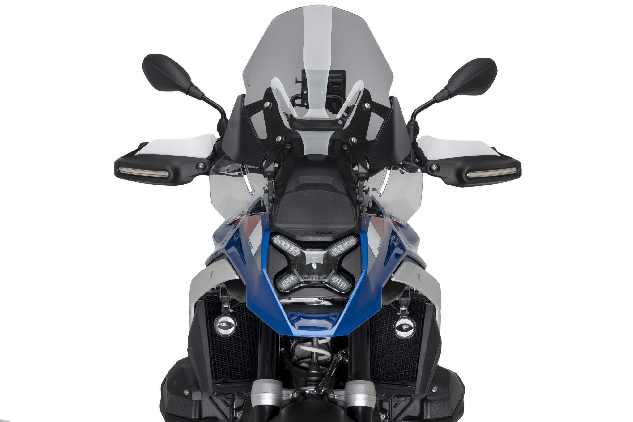 Puig Touringruta förbättrar vindskyddet och komforten under längre turer och körning i hög hastighet. Den ökade höjden och den aerodynamiska formen minskar vindtrycket och turbulensen mot överkropp och hjälm för en mer avslappnad körupplevelse.