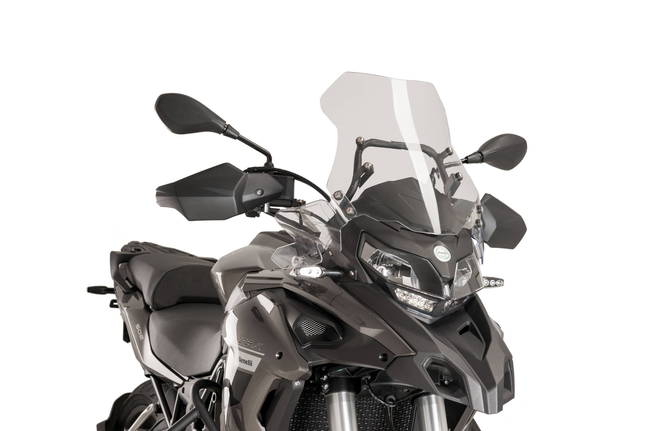 Puig Touring-vindruta med visir är utvecklad för förare som vill ha maximal vindskydd, mindre turbulens och högre komfort både på korta och långa turer. Den höga rutan i kombination med ett justerbart övre visir minskar vindtrycket avsevärt och gör det möjligt att finjustera luftflödet efter körställning och hastighet.