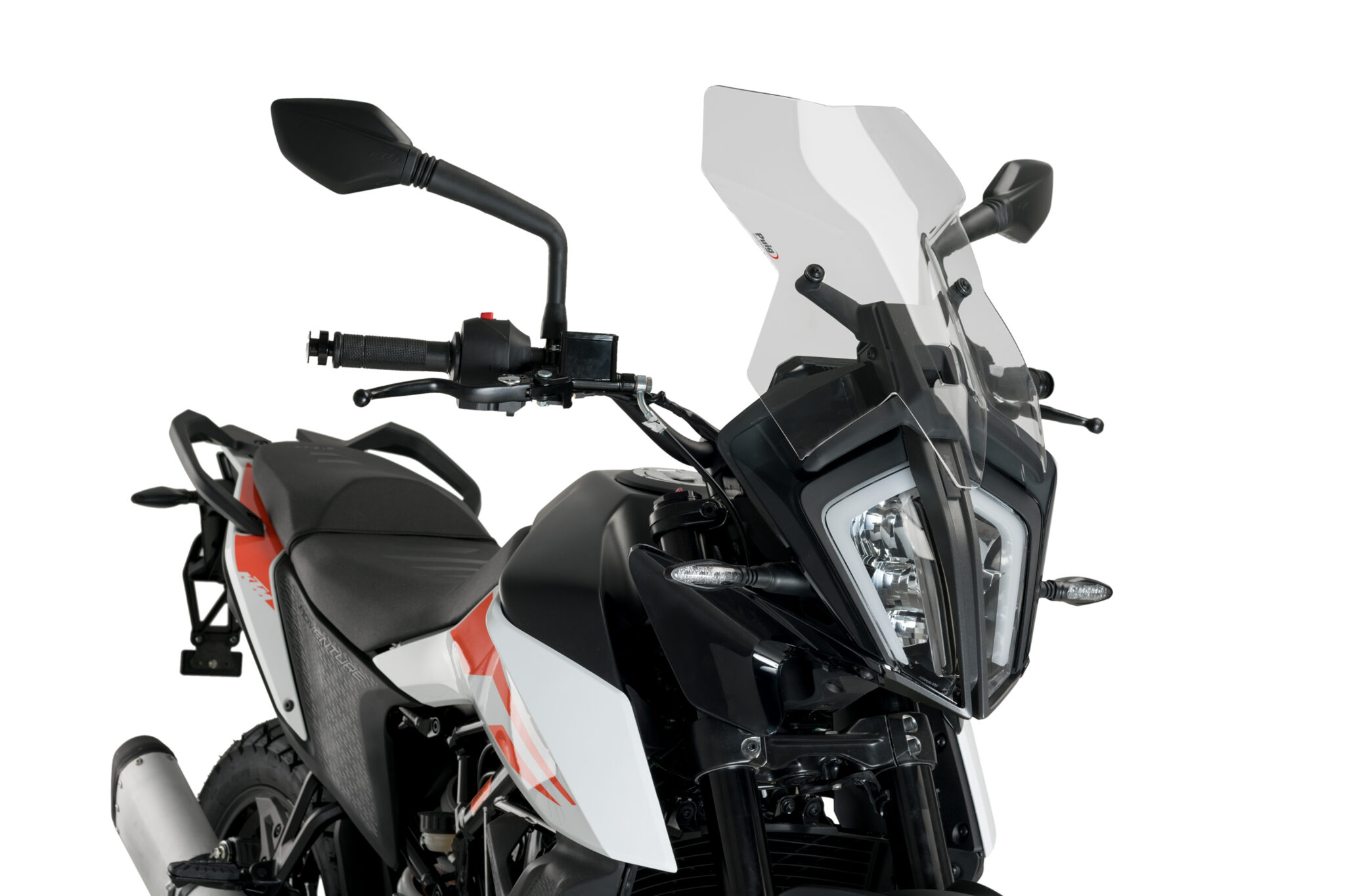 Puig Touring-vindrutan är utvecklad för att ge optimalt vindskydd under längre körningar utan att kompromissa med sikten eller motorcykelns adventure-look. Rutan är designad och tillverkad med fokus på aerodynamik, komfort och ett exklusivt uttryck som matchar KTM 390 Adventure-stilen perfekt.