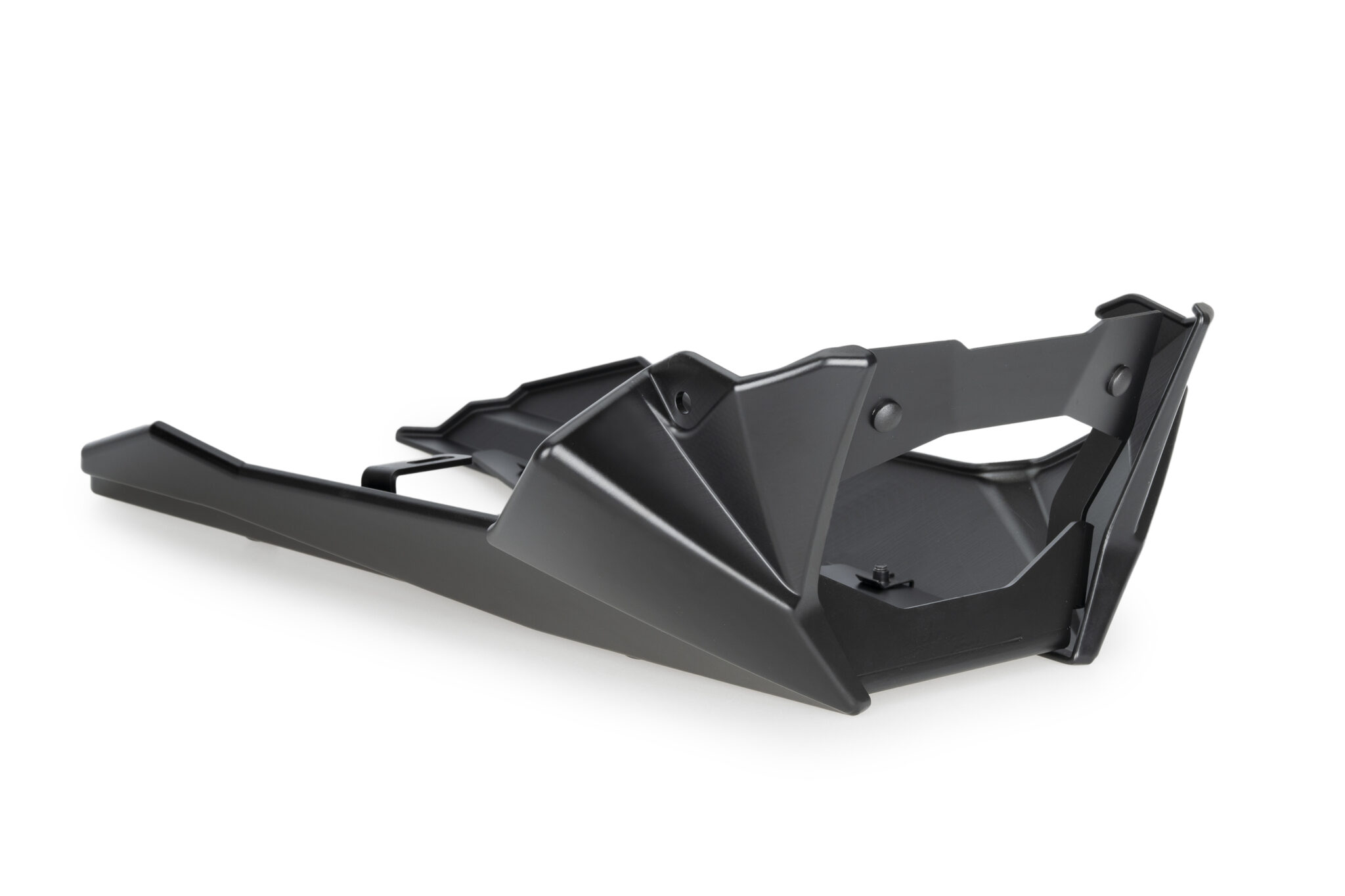 Underkåpan är tillverkad i motståndskraftigt material och levereras med nödvändiga fästen för korrekt montering. Konstruktionen är modellspecifikt anpassad och monteras på motorcykelns befintliga fästpunkter.