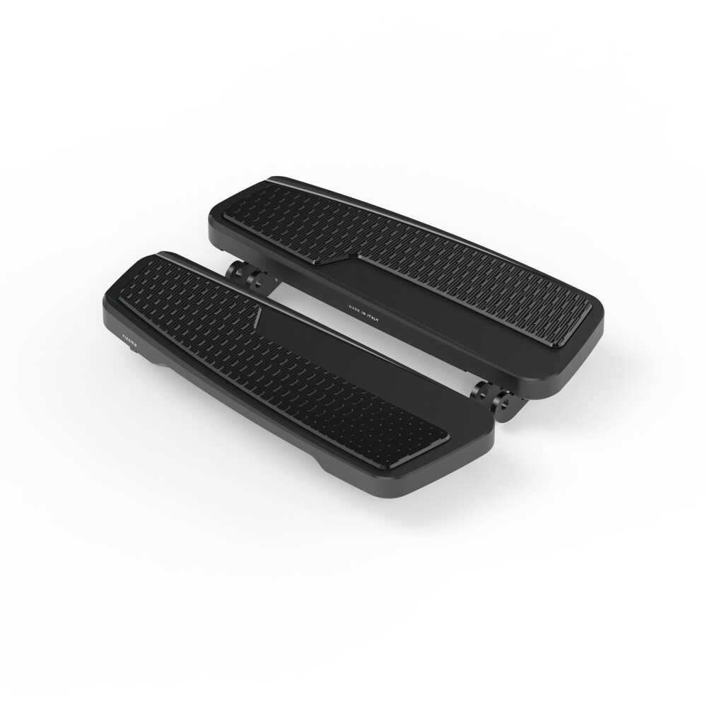 Floorboards är fullt justerbara framåt och bakåt (+/- 10 mm) samt i sidled (+10 mm), vilket ger föraren möjlighet att finjustera sin position för optimal ergonomi och kontroll.