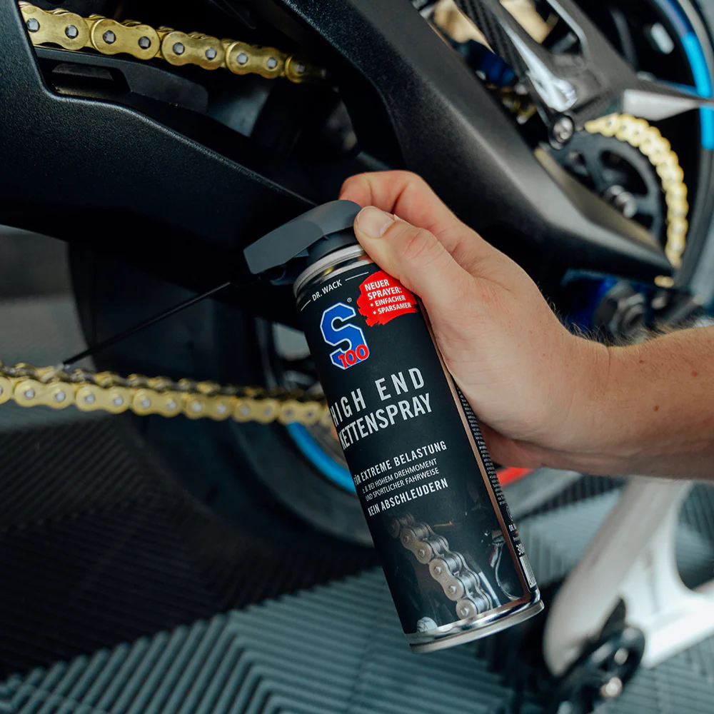 S100 High End Kedjespray ger maximal smörjning och slitageskydd för motorcykelns kedja – även under extrem belastning, hård acceleration och sportig körning. Den avancerade PTFE-formulan tränger djupt in i kedjelänkarna och bildar en stark, långvarig skyddsfilm som minskar friktion och motverkar korrosion. Produkten är utvecklad för att stanna kvar på kedjan utan att kastas av, vilket håller både kedja och omgivande delar rena och minimerar stänk.
