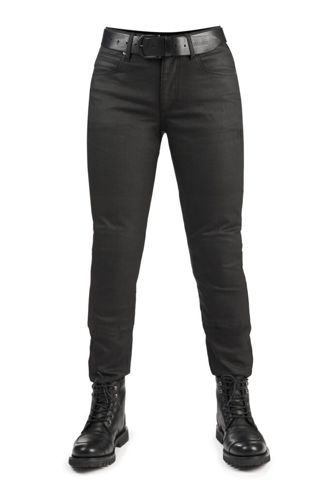 Et par premium dame motorcykeljeans fra Pando Moto – til rytteren, der vil have et elegant, læderinspireret look kombineret med fleksibilitet, CE-certificeret beskyttelse og komfort til alle årstider.