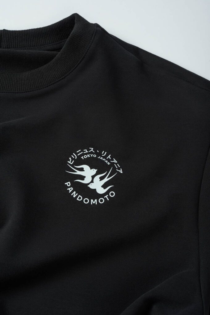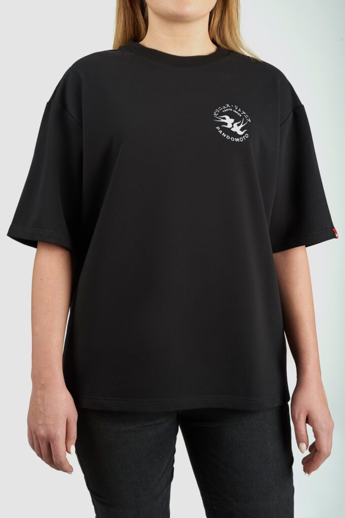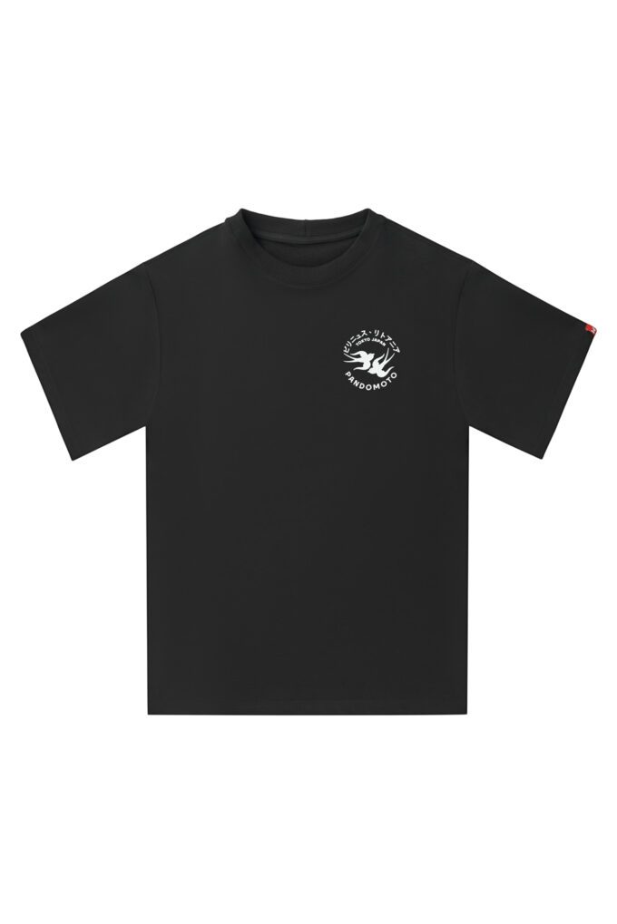 - Klassisk sort farve med PANDO MOTO-logo og japansk inspireret grafik på brystet.